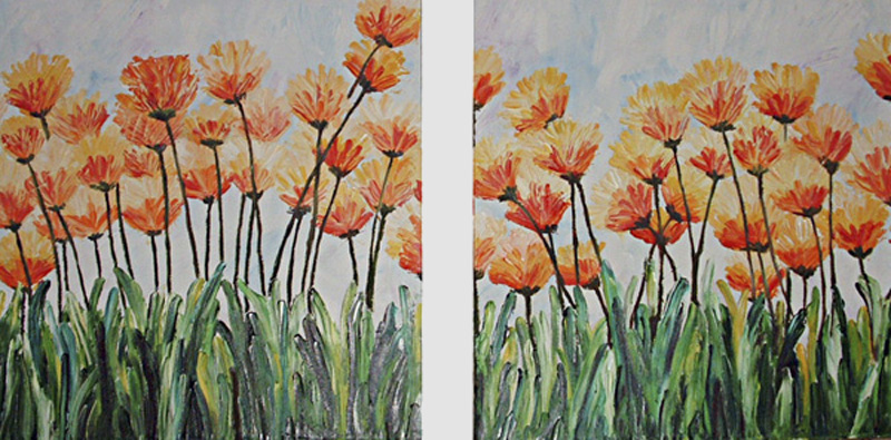 This art work contains of two separete 35 in 35 cm peices. The tecnique is oil color on canvas using finger and chisel. This artwork can be cleaned by a damp clothing.